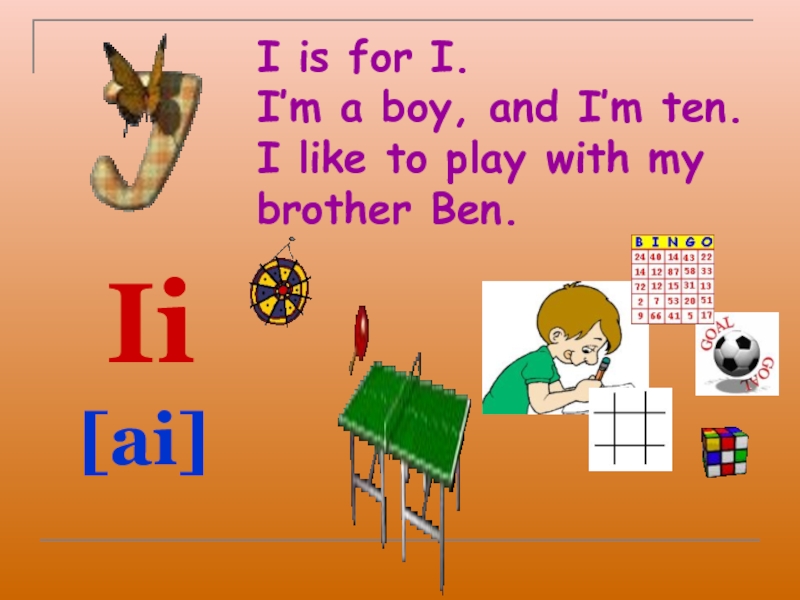 Слайд 10I is for I. I’m a boy, and I’m ten. I like
