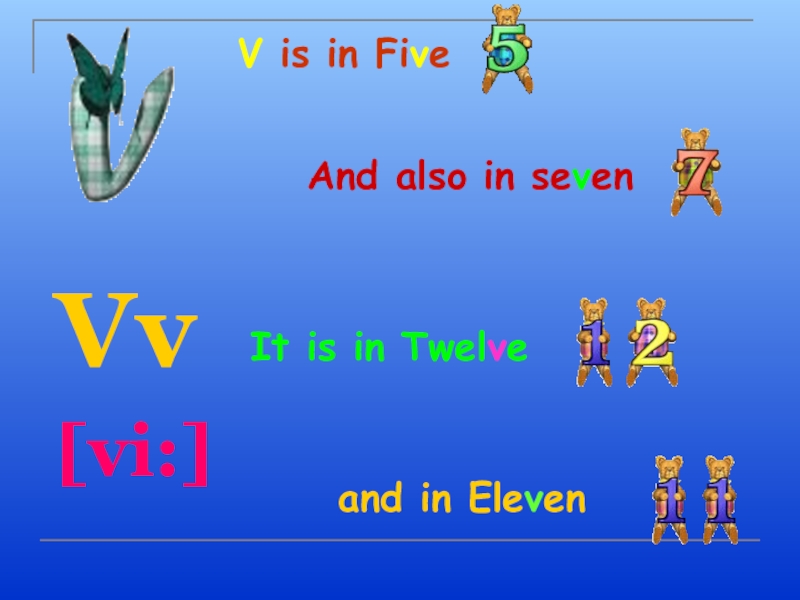 V is in Five Vv [vi:] And also in sevenIt is in Twelveand in Eleven