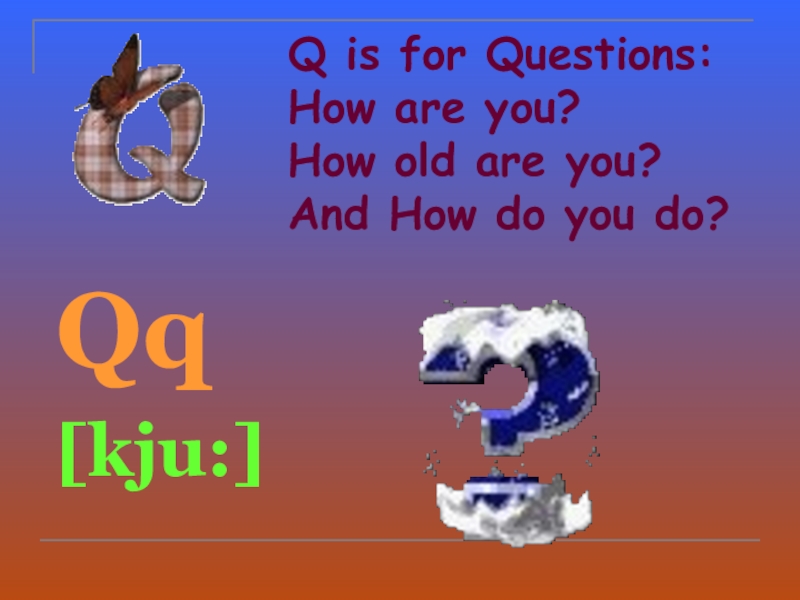 Слайд 18Q is for Questions: How are you? How old are you? And