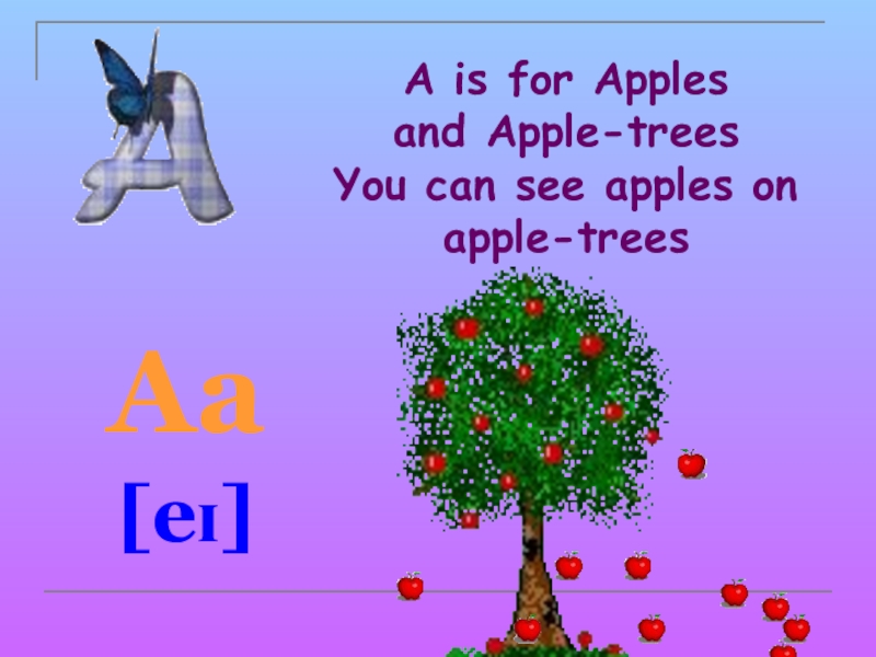 A is for Apples and Apple-trees You can see apples on apple-treesAa[eɪ]