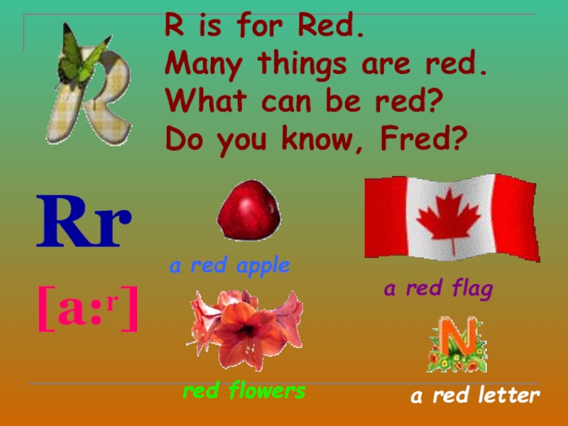 R is for Red.  Many things are red. What can be red?  Do you know,