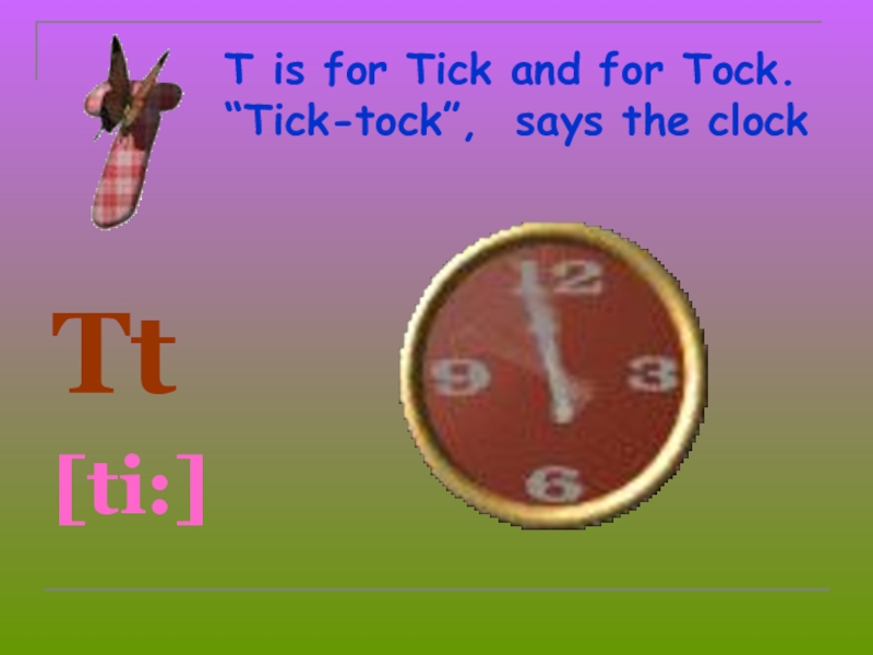 T is for Tick and for Tock. “Tick-tock”, says the clockTt [ti:]