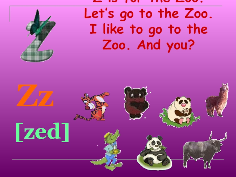 Слайд 27Z is for the Zoo. Let’s go to the Zoo. I like