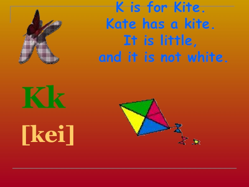 Слайд 12K is for Kite. Kate has a kite. It is little, and
