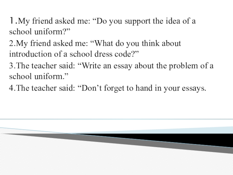 3.The teacher said: “Write an essay about the problem of a school uniform.”