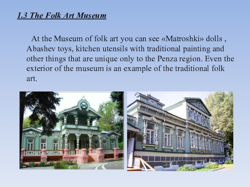 Слайд 41.3 The Folk Art Museum