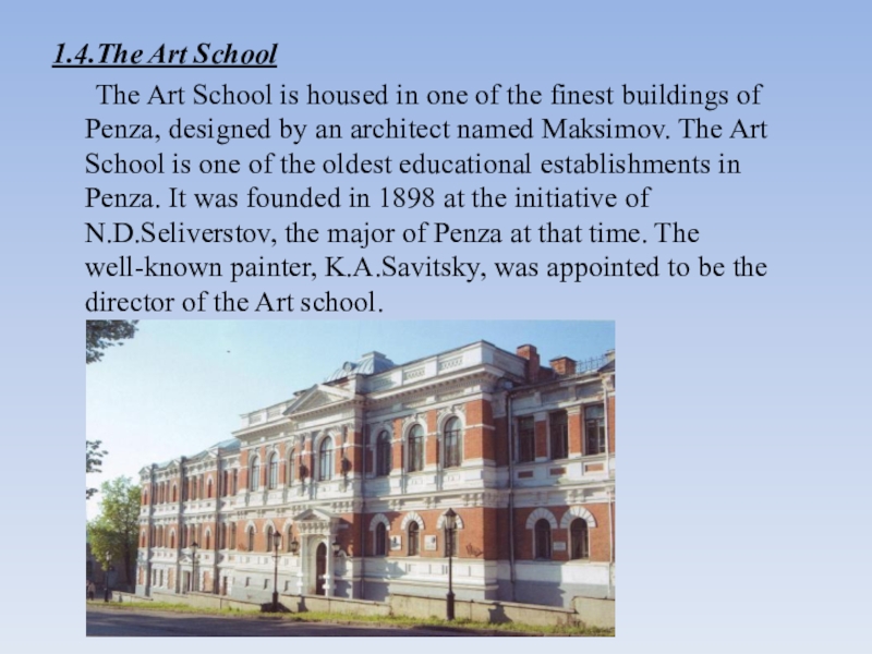 Слайд 51.4.The Art School