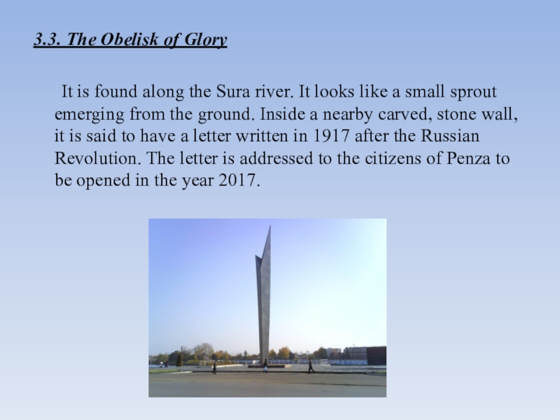 Слайд 113.3. The Obelisk of Glory