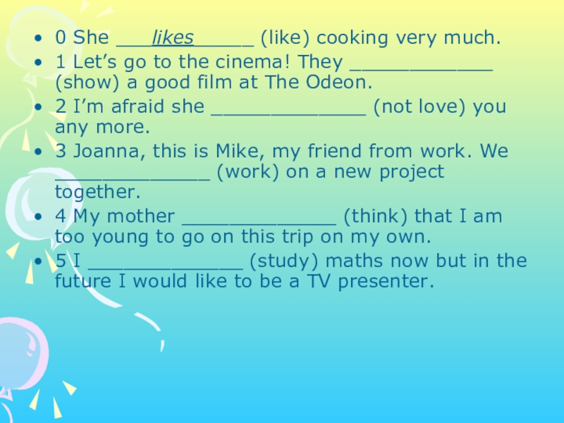 5 I _____________ (study) maths now but in the future I would like to be a TV presenter.