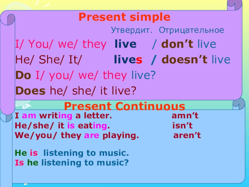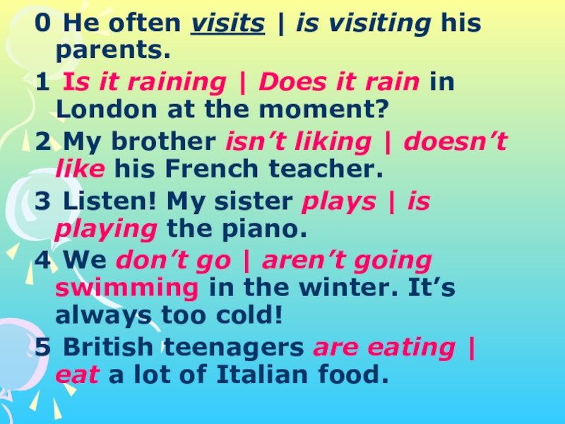 2 My brother isn’t liking | doesn’t like his French teacher.