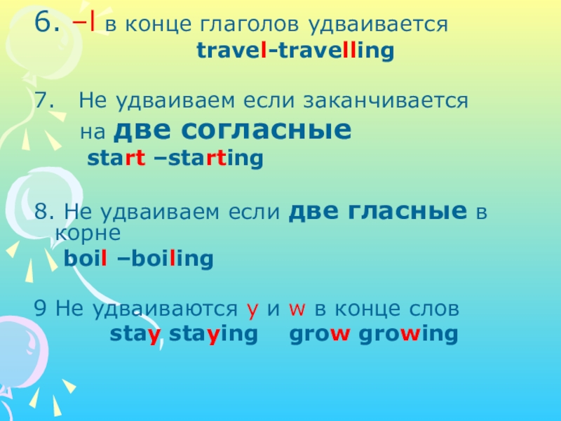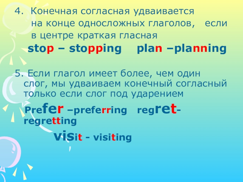 5. Если глагол имеет более, чем один слог, мы удваиваем конечный согласный только если слог под ударением