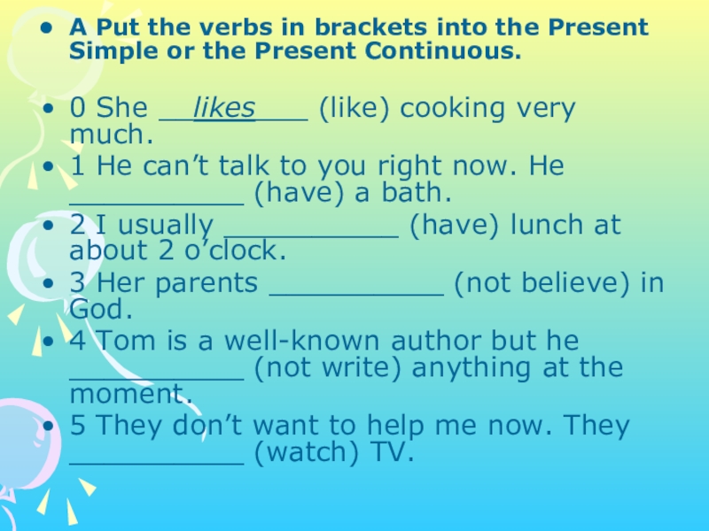 1 He can’t talk to you right now. He __________ (have) a bath.