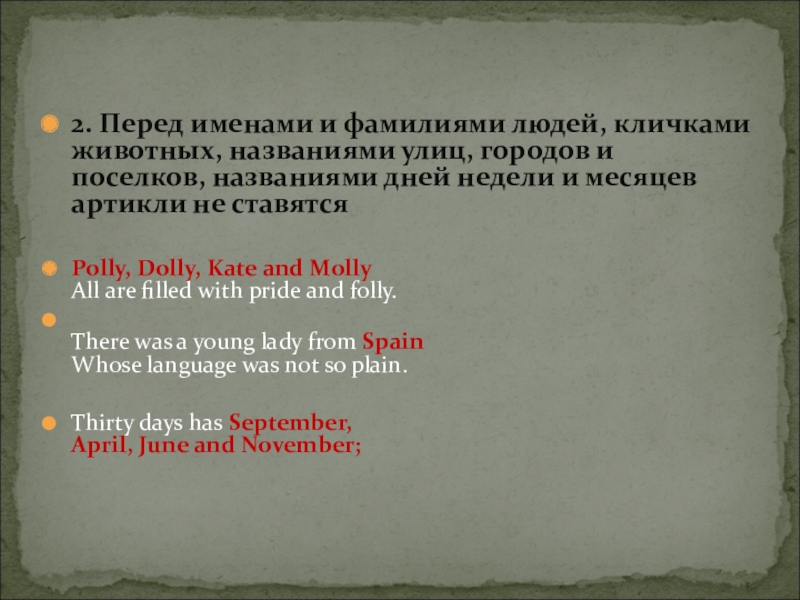 и поселков, названиями дней недели и месяцев артикли не ставятся