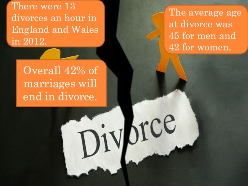 The average age at divorce was 45 for men and 42 for women.