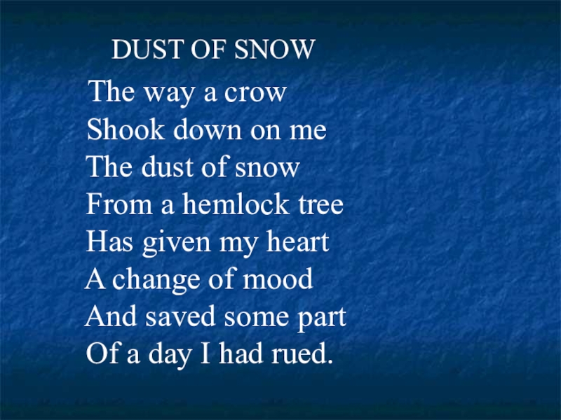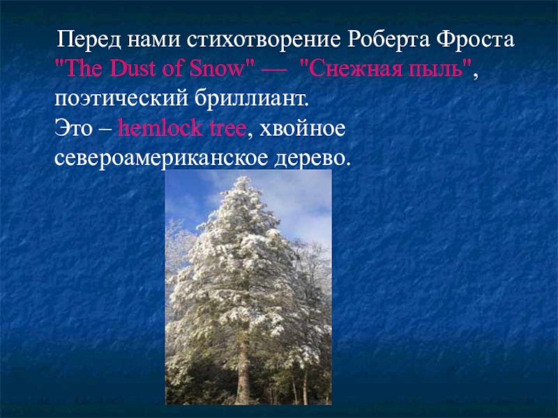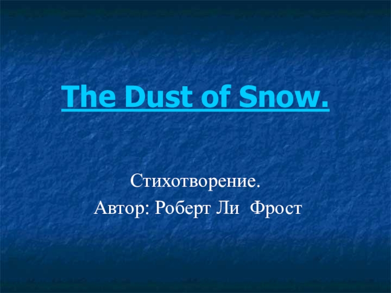 Слайд 5 Перед нами стихотворение Роберта Фроста "The Dust of Snow"
