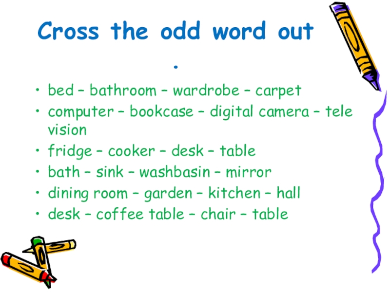Слайд 7Cross the odd word out.