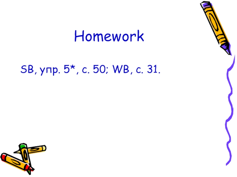 SB, упр. 5*, с. 50; WB, с. 31.