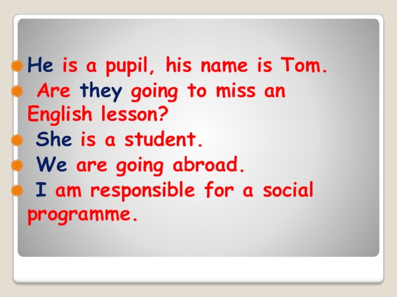 Слайд 25He is a pupil, his name is Tom.