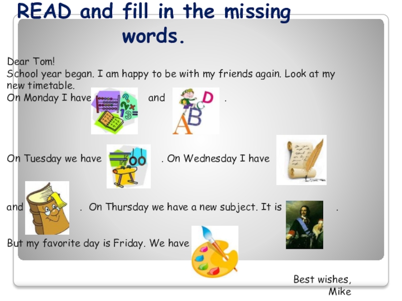 Слайд 28READ and fill in the missing words.
