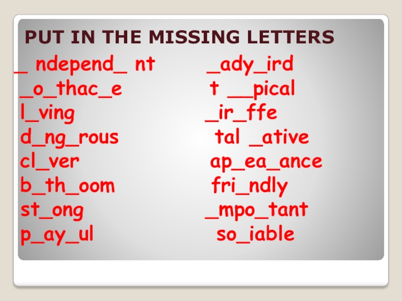 Слайд 16PUT IN THE MISSING LETTERS