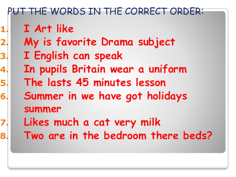 Слайд 31 PUT THE WORDS IN THE CORRECT ORDER:
