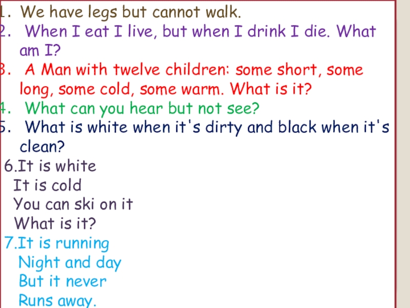 Слайд 34We have legs but cannot walk.