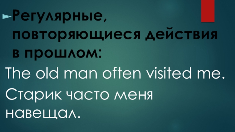 Регулярные, повторяющиеся действия в прошлом:The old man often visited me.Старик часто меня навещал.