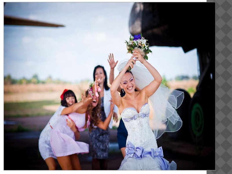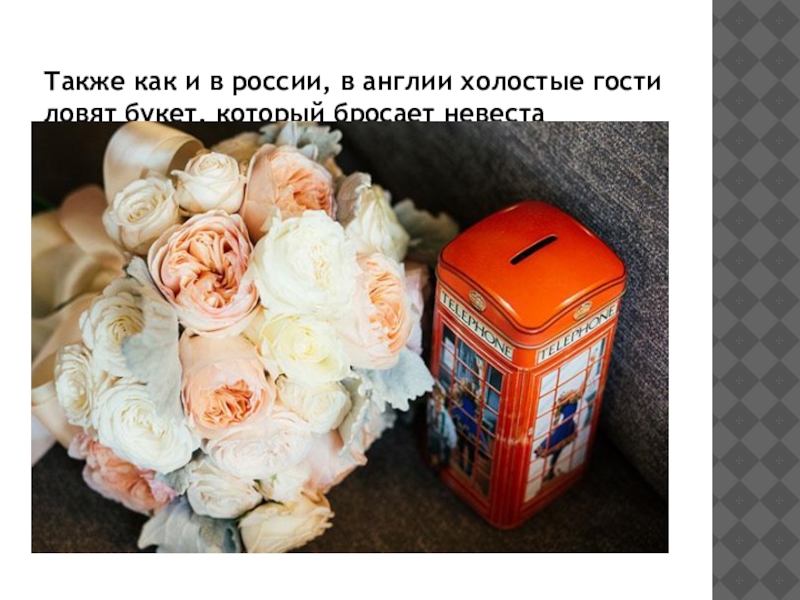 Слайд 10Также как и в россии, в англии холостые гости ловят букет,