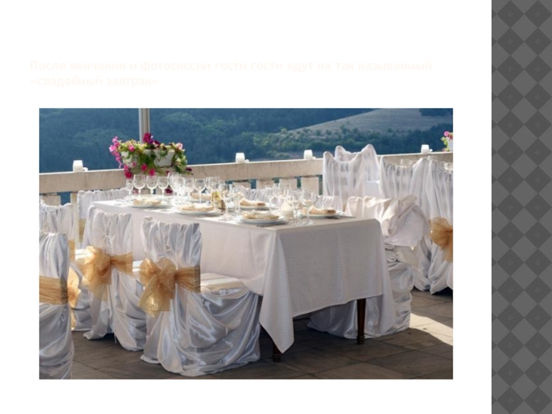 Слайд 7После венчания и фотосессии гости гости едут на так называемый «свадебный