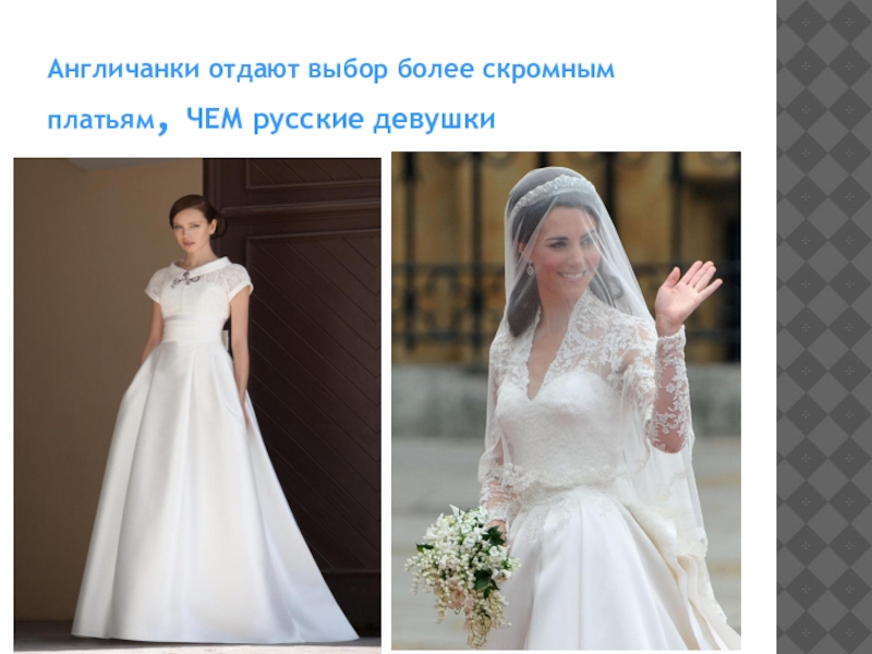 Слайд 12Англичанки отдают выбор более скромным платьям, ЧЕМ русские девушки