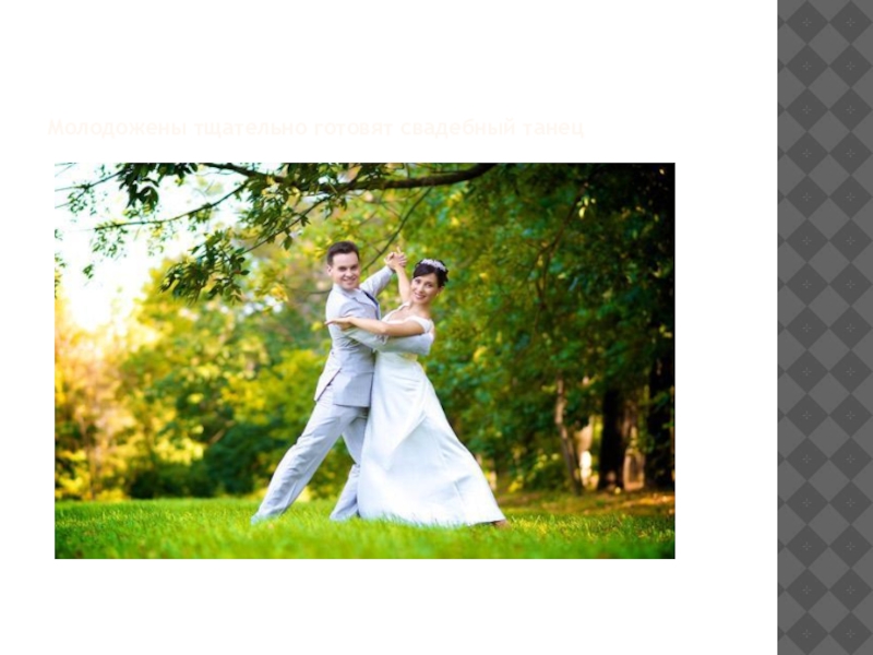 Слайд 6Молодожены тщательно готовят свадебный танец