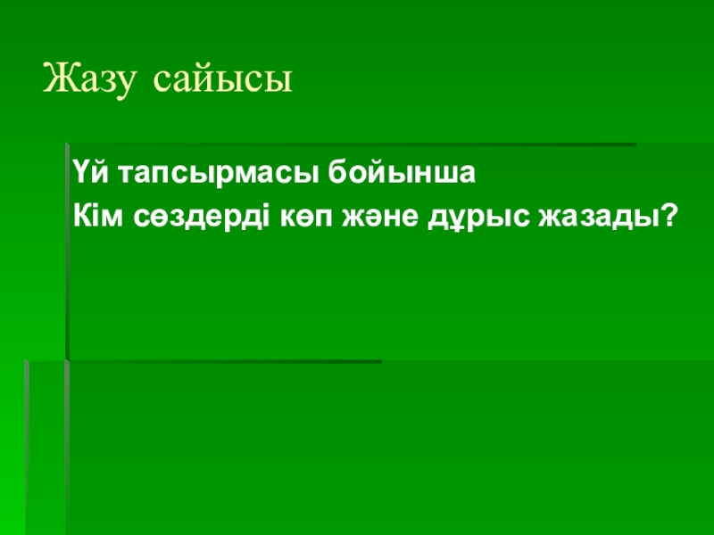 Жазу сайысыҮй тапсырмасы бойыншаКім сөздерді көп және дұрыс жазады?