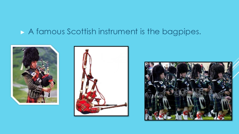 Слайд 7A famous Scottish instrument is the bagpipes.