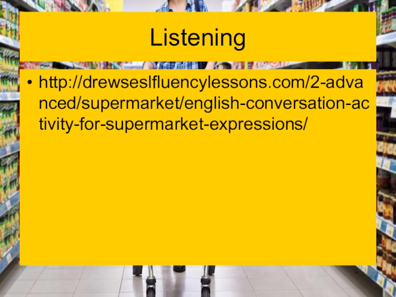 Listening http://drewseslfluencylessons.com/2-advanced/supermarket/english-conversation-activity-for-supermarket-expressions/