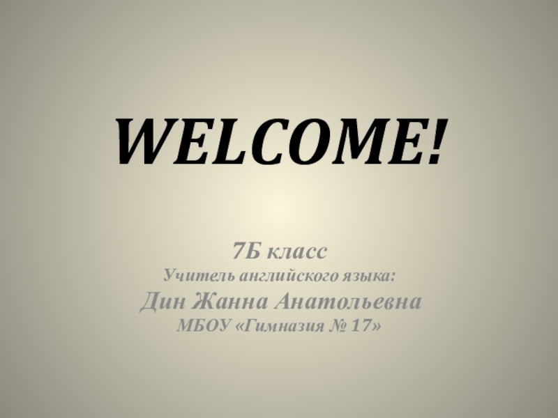 WELCOME!7Б классУчитель английского языка: Дин Жанна АнатольевнаМБОУ «Гимназия № 17»