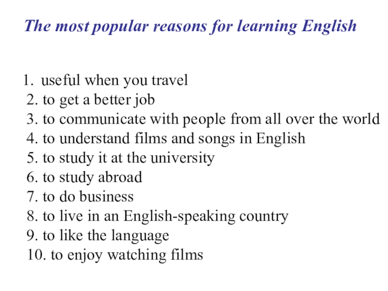 The most popular reasons for learning English