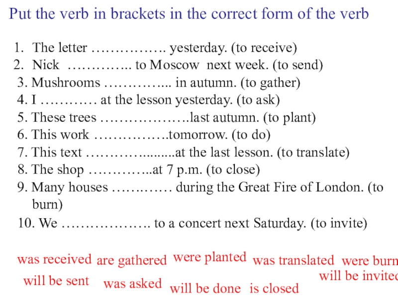 Put the verb in brackets in the correct form of the verb