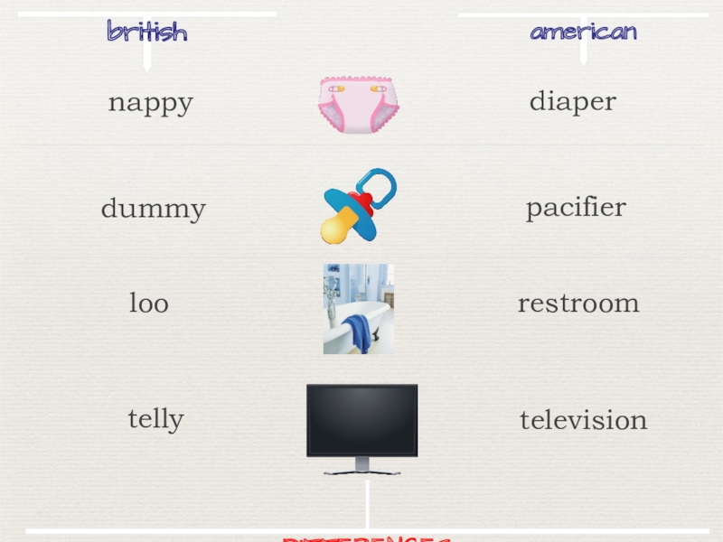 britishamericandiaperdummypacifierloorestroomtellytelevisionDIFFERENCESnappy