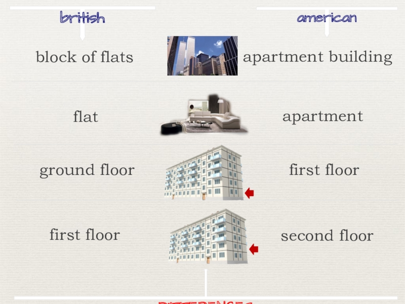 britishamericanapartment buildingflatapartmentground floorfirst floorfirst floorsecond floorDIFFERENCESblock of flats