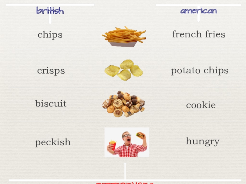 britishamericanfrench friescrispspotato chipsbiscuitcookiepeckishhungryDIFFERENCESchips