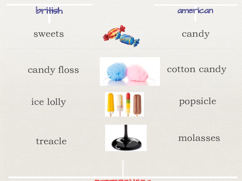 britishamericansweetscandycandy flosscotton candyice lollypopsicletreaclemolassesDIFFERENCES