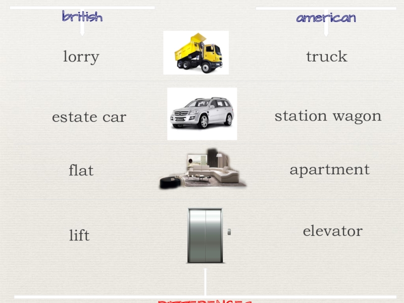 britishamericanlorrytruckestate carstation wagonflatapartmentliftelevatorDIFFERENCES