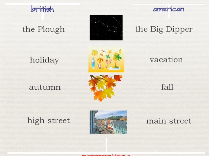 britishamericanthe Big Dipperholidayvacationautumnfallhigh street main streetDIFFERENCESthe Plough