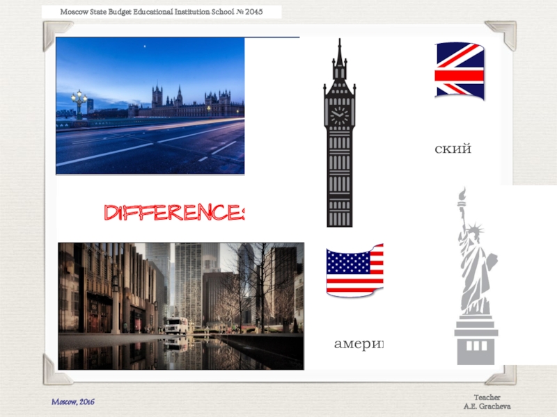 DIFFERENCESбританскийамериканский Moscow State Budget Educational Institution School № 2045Moscow, 2016TeacherA.E. Gracheva