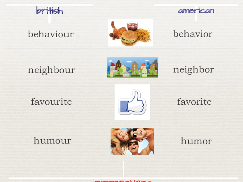 britishamericanbehaviorneighbourneighborfavouritefavoritehumourhumorDIFFERENCESbehaviour