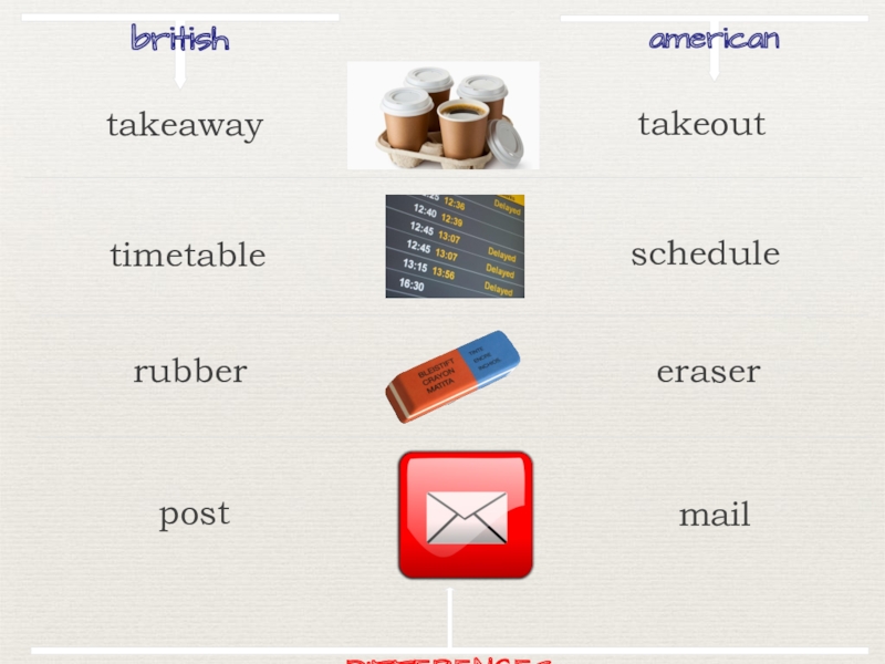 britishamericantakeouttimetableschedulerubbereraserpostmailDIFFERENCEStakeaway