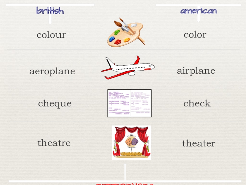 britishamericancoloraeroplaneairplanechequechecktheatretheaterDIFFERENCEScolour
