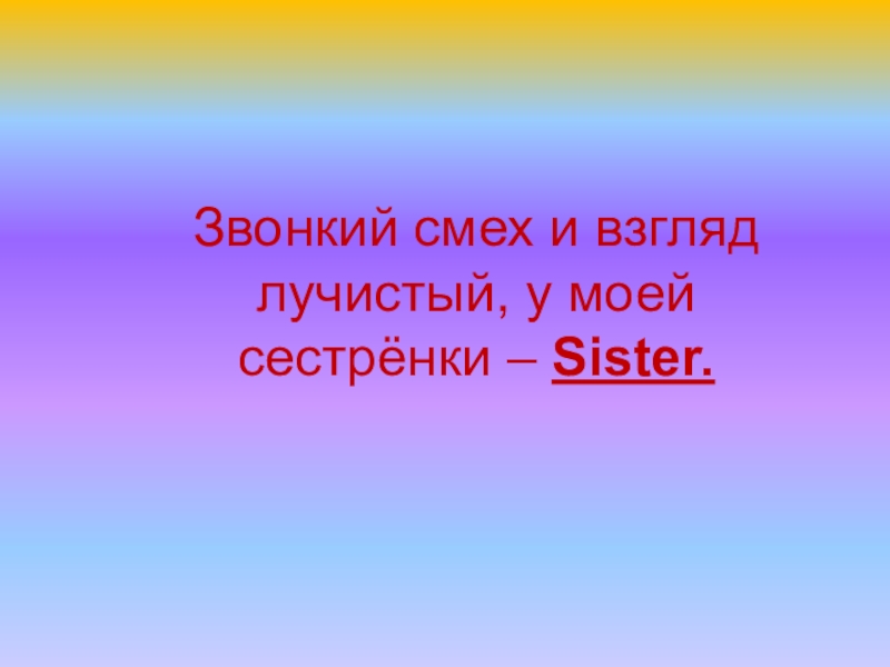 Слайд 20Звонкий смех и взгляд лучистый, у моей сестрёнки – Sister.