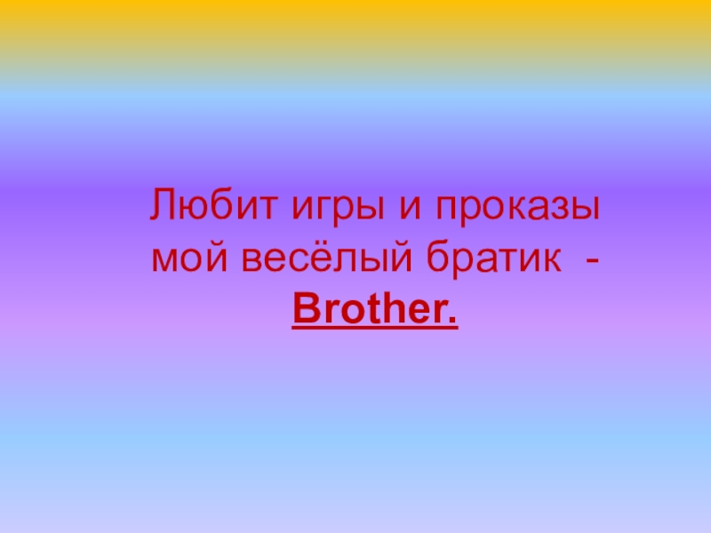 Слайд 21Любит игры и проказы мой весёлый братик - Brother.