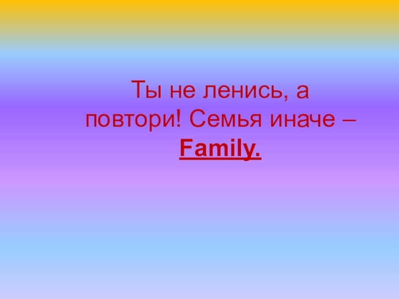 Слайд 17Ты не ленись, а повтори! Семья иначе – Family.